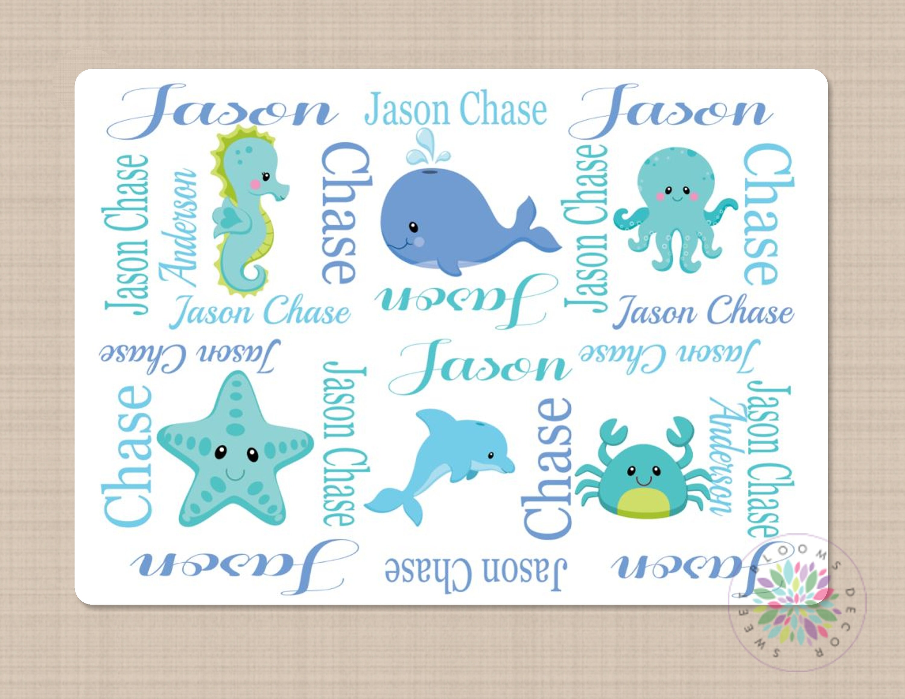 Sea Life Blanket Baby Crib Quilt Personalized Swaddle Blanket Toddler Blanket